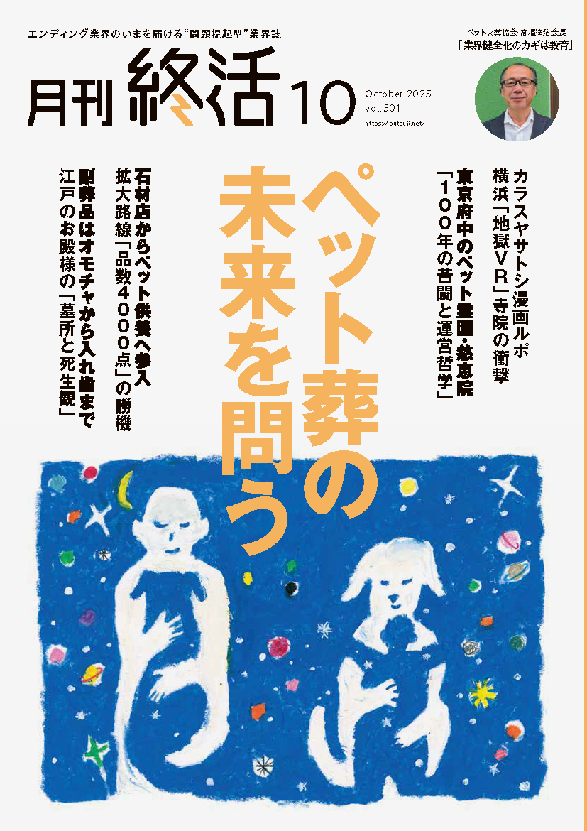 「ペット供養の現在地〜拡大するニーズと、業界の未来〜」と題した総力特集を中心に、供養・葬送の現状の課題と未来への展望をさまざまな視点から掘り下げる1冊となりました。