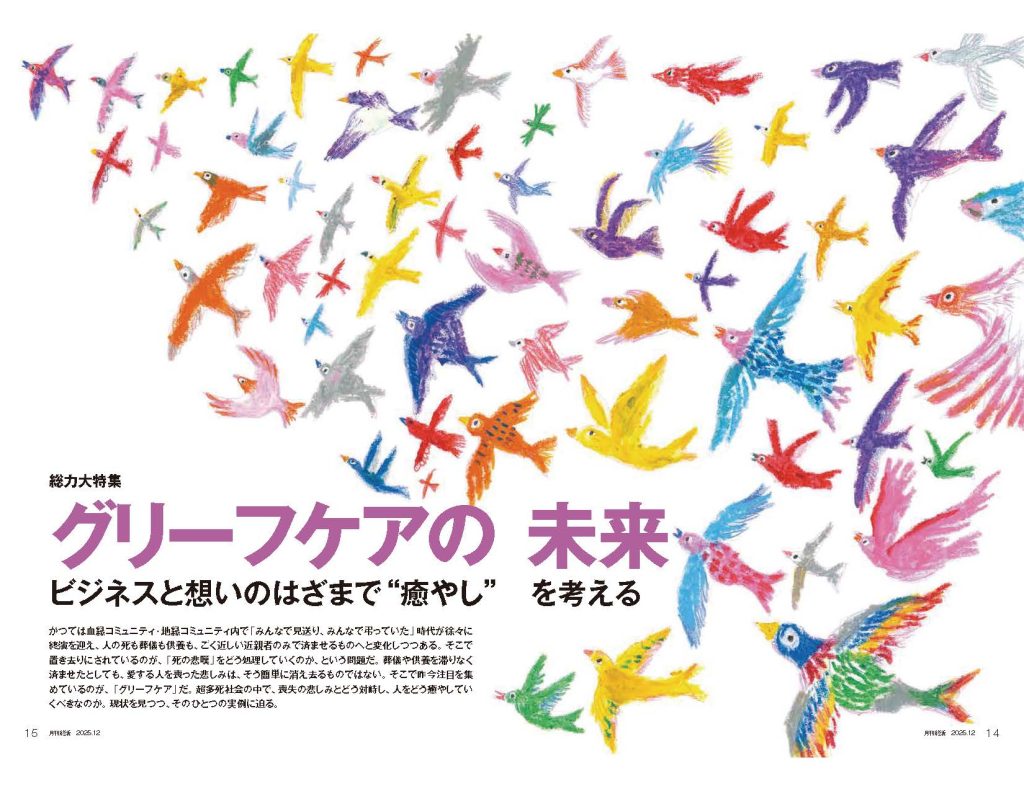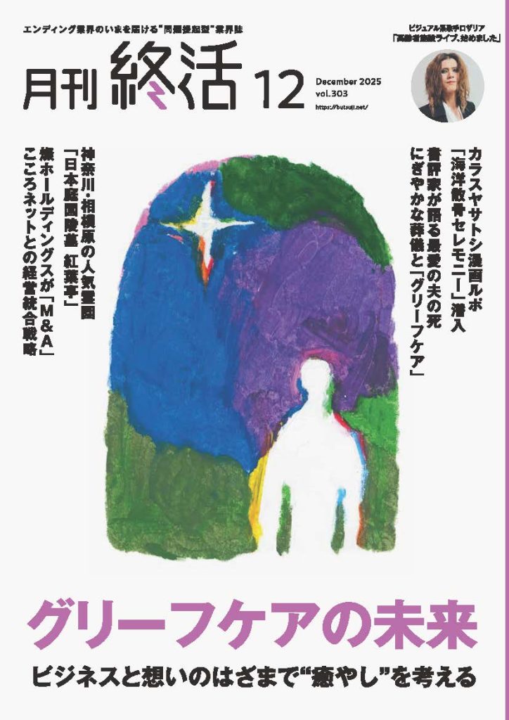 「グリーフケアの未来〜ビジネスと想いのはざまで“癒やし” を考える〜」と題した総力特集を中心に、供養・葬送の現状の課題と未来への展望をさまざまな視点から掘り下げる1冊となりました。